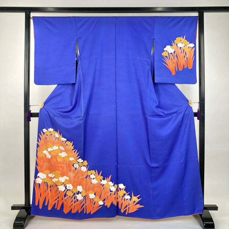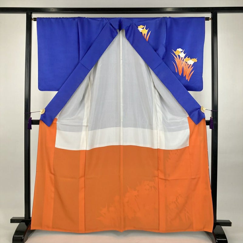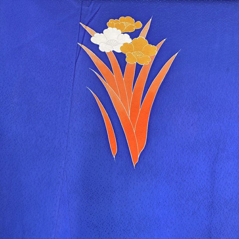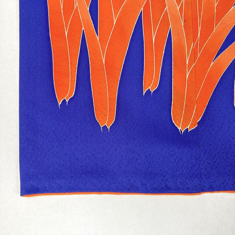 柄には、すらりと伸びた花葉が描かれています。それは、凛とした菖蒲でしょうか。それとも、清楚な水仙でしょうか。いずれにしても、その姿は見る人の心を惹きつけ、優雅な気持ちにしてくれます。花葉は、橙の濃淡によって立体的に表現され躍動感を感じさせます。