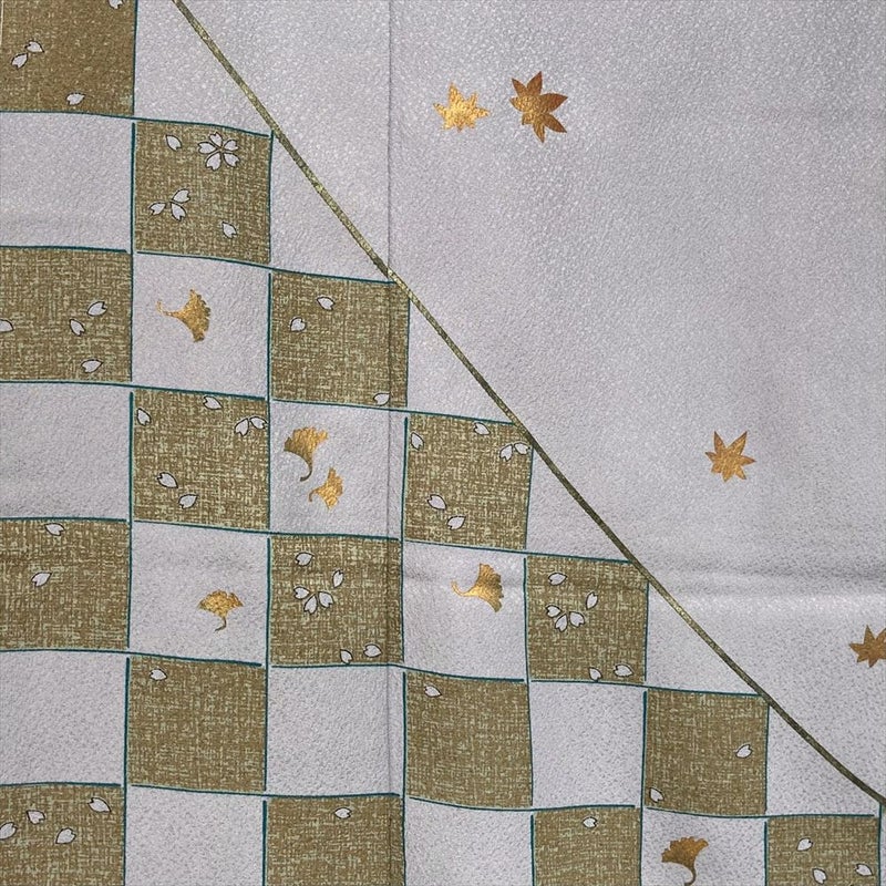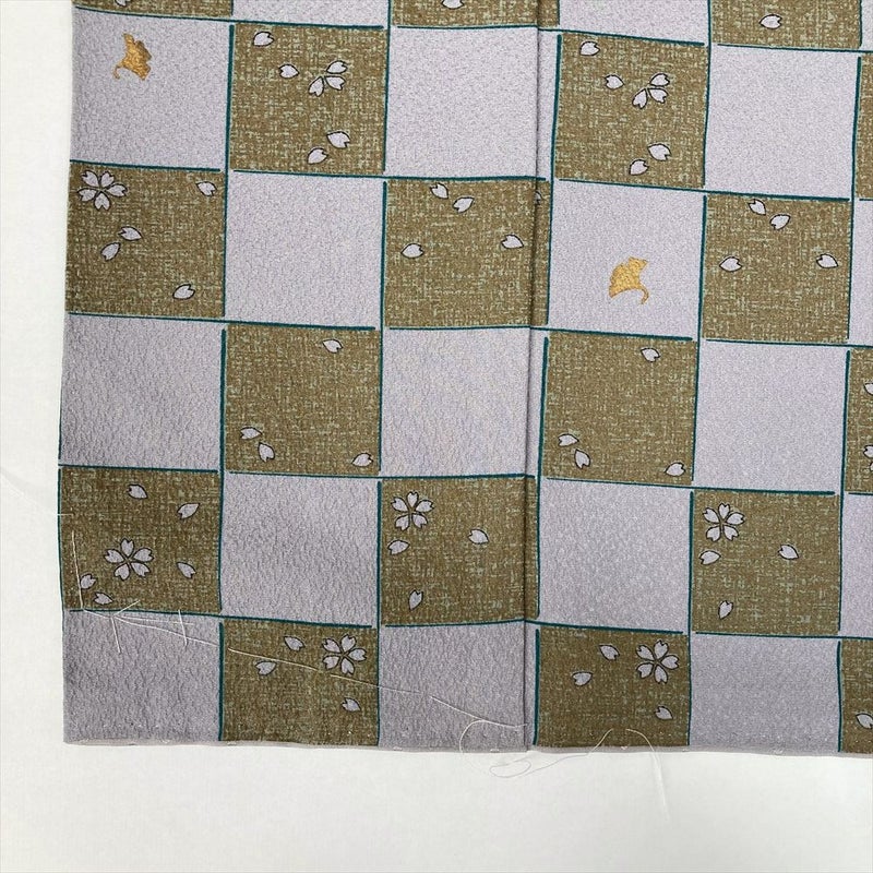 【色柄】薄紫 セミフォーマル 地紋織り 染め 金彩 市松に桜 もみじ イチョウ