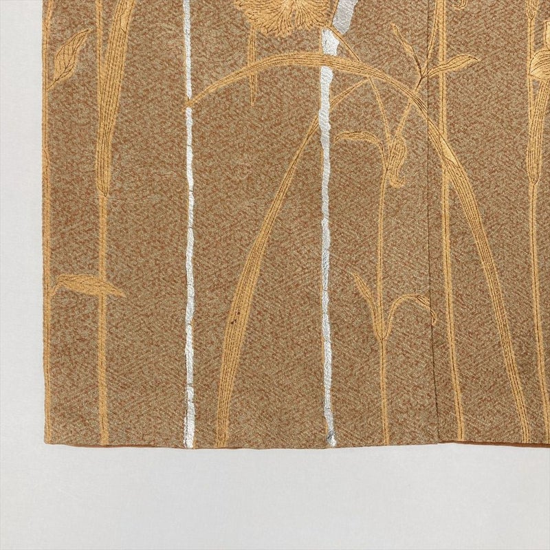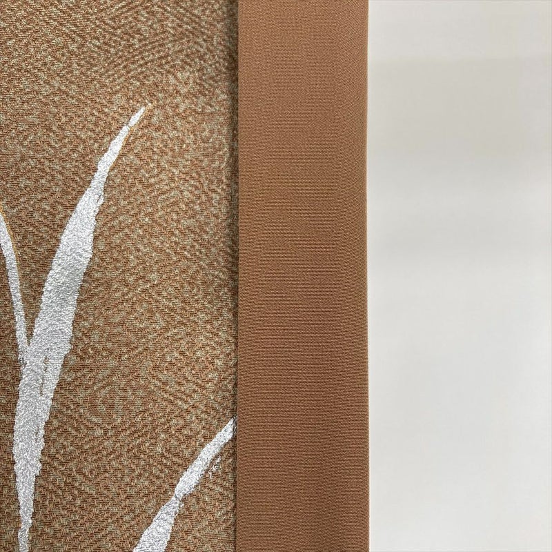 【色柄】柳茶 茶 セミフォーマル 地紋織り 染め 銀彩 四季の草花