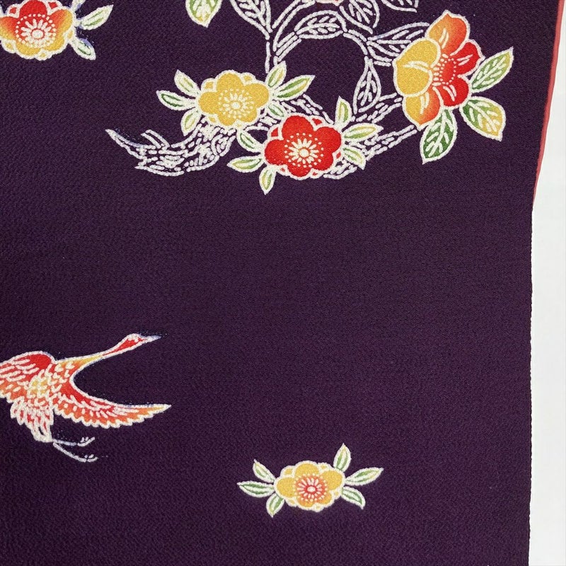 【色柄】紫 フォーマル セミフォーマル ちりめん 型絵染め 椿 梅 鶴