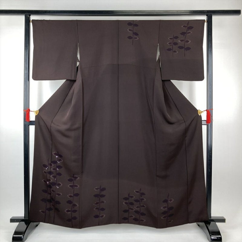 (中古)訪問着 焦げ茶 フォーマル セミフォーマル 刺繍 植物 袷 S【身丈】157.5cm【裄丈】67.5cm