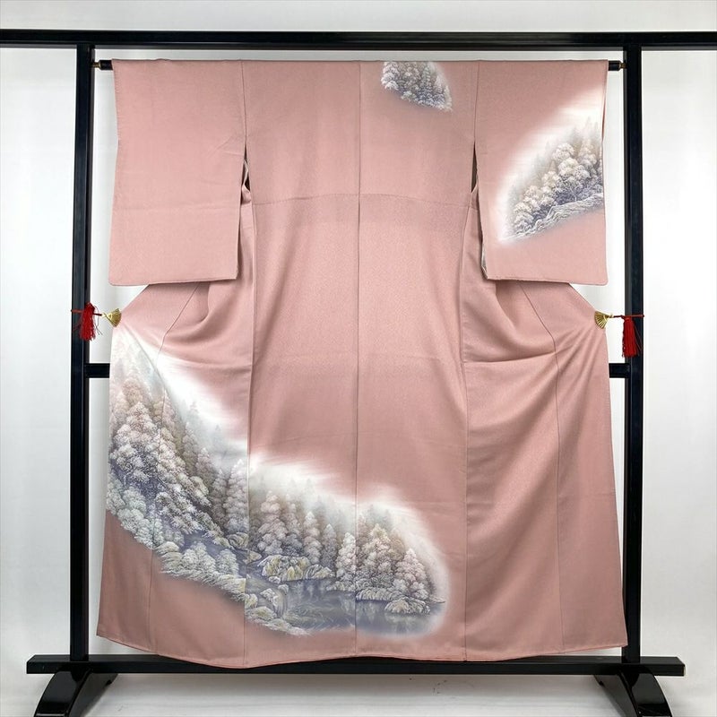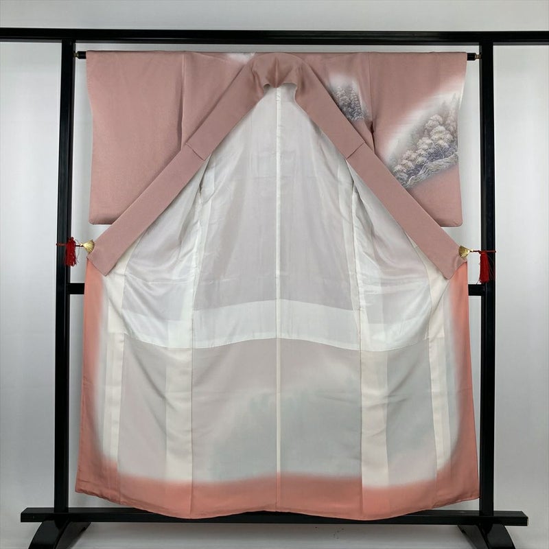 (中古)訪問着 ピンク セミフォーマル ぼかし染め たたき染め 金彩 木立 袷 SS【身丈】152.5cm 【裄丈】63.5cm