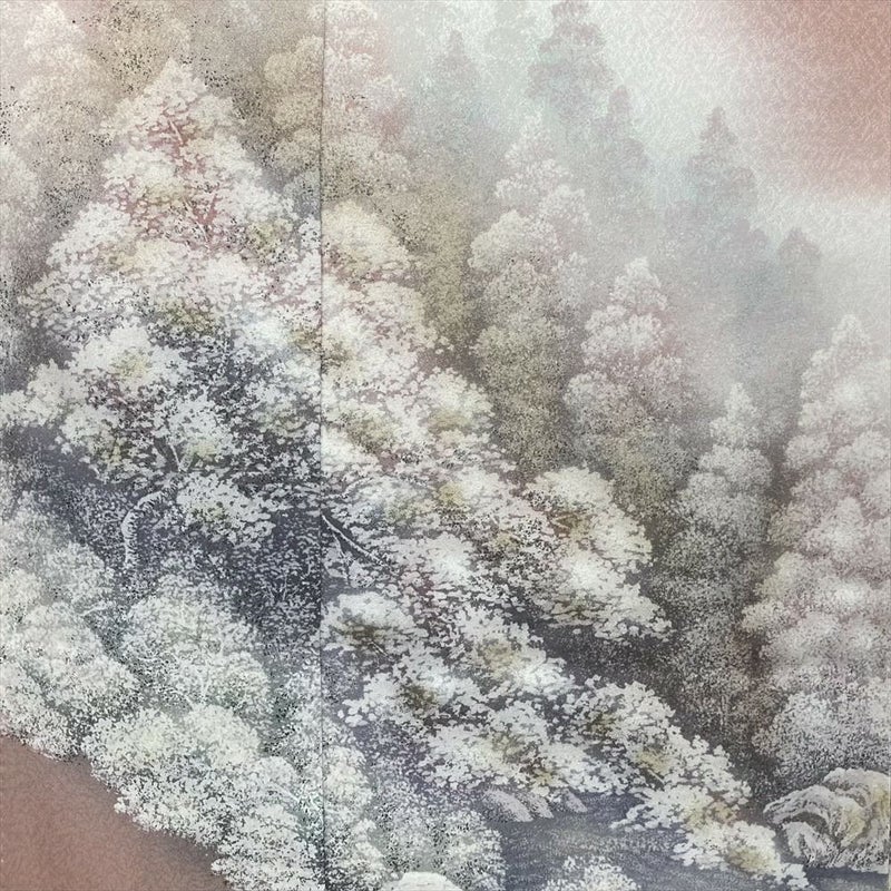 【色柄】ピンク セミフォーマル ぼかし染め たたき染め 金彩 木立