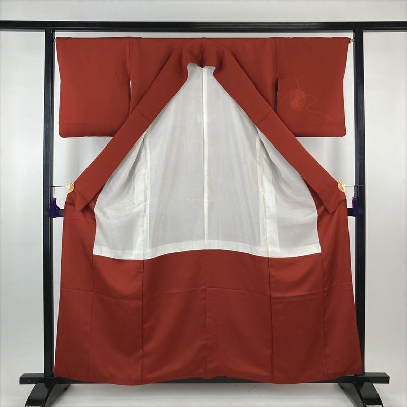 (中古)付下 赤 フォーマル セミフォーマル 一つ紋 地紋織り 棗 袷 S【身丈】155.5cm 【裄丈】67cm