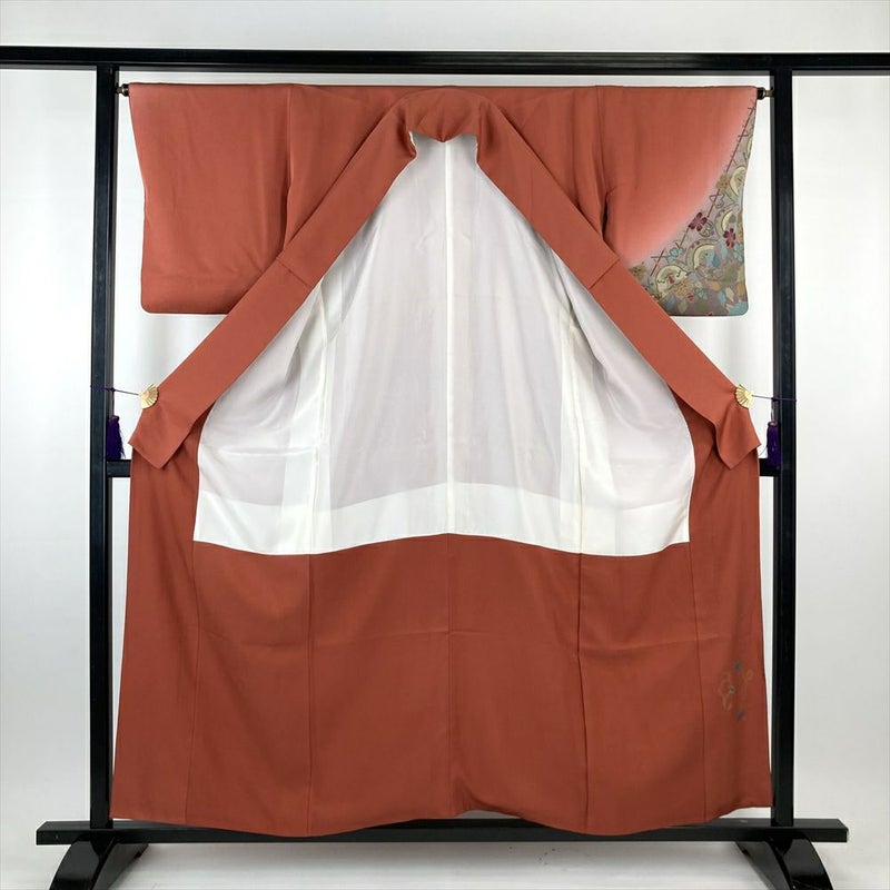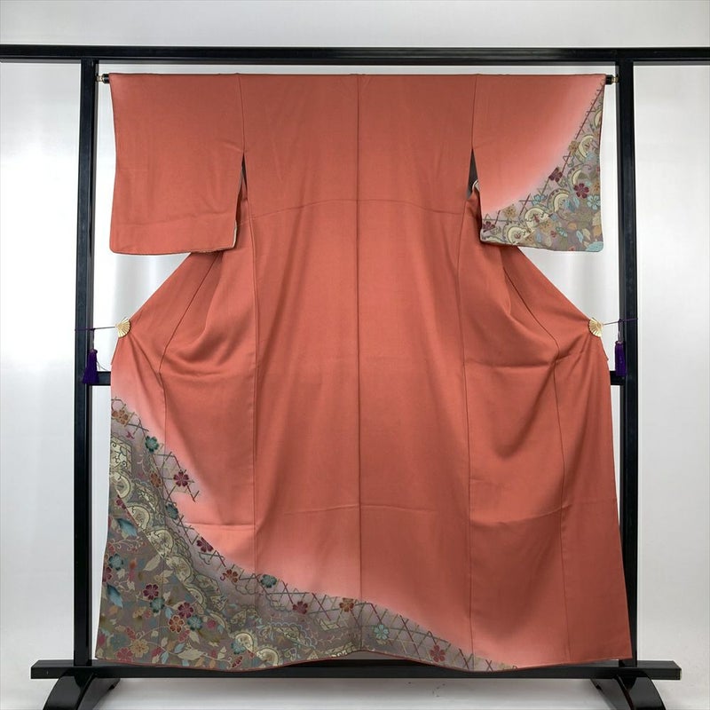 (中古)付下 サーモンピンク フォーマル セミフォーマル ぼかし染め 金彩 植物 オリエンタル 袷 SS【身丈】152cm 【裄丈】65cm