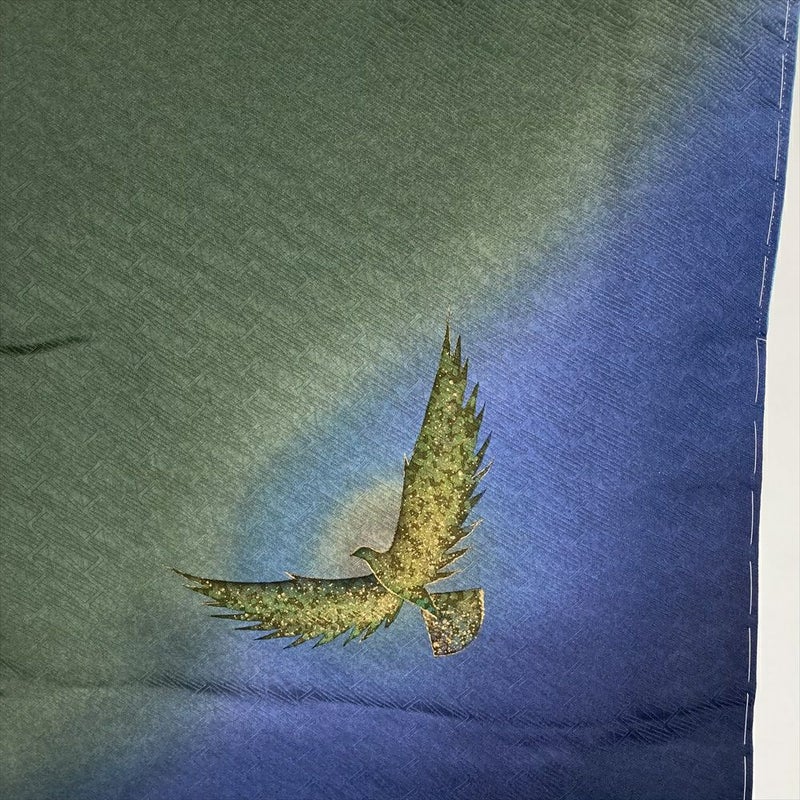 【色柄】緑 フォーマル セミフォーマル 斉藤三才 地紋織り ぼかし染め 金彩 鳩 鳥