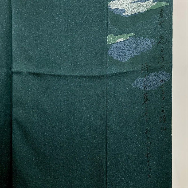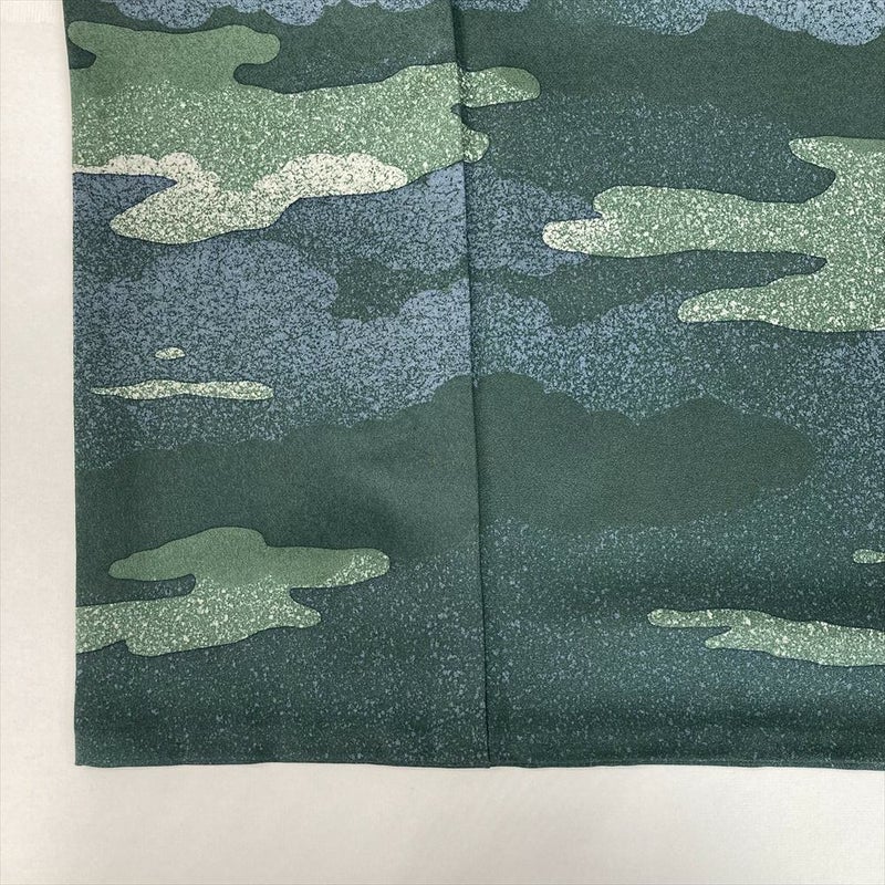 【色柄】青緑 フォーマル セミフォーマル たたき染め 霞 雲 蝋纈山水文様 落款と為書き作家物