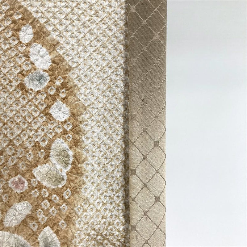 【色柄】薄茶 薄緑 ベージュ セミフォーマル 染め 総絞り 鹿の子