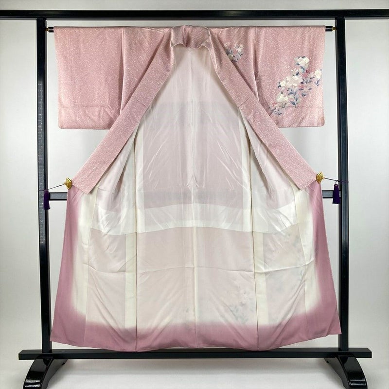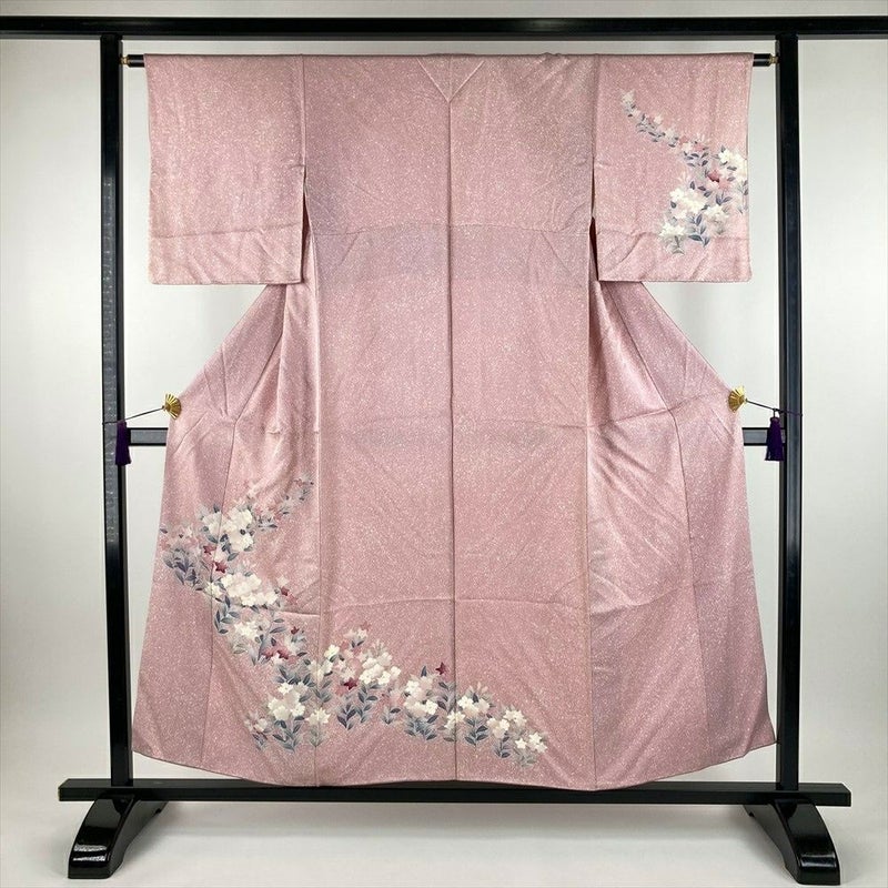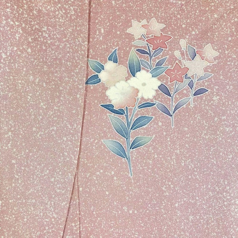 (中古) 訪問着 桜色 ピンク系 セミフォーマル たたき染め 竜胆 石楠花 四季花 袷 SS 【身丈】150cm【裄丈】63cm