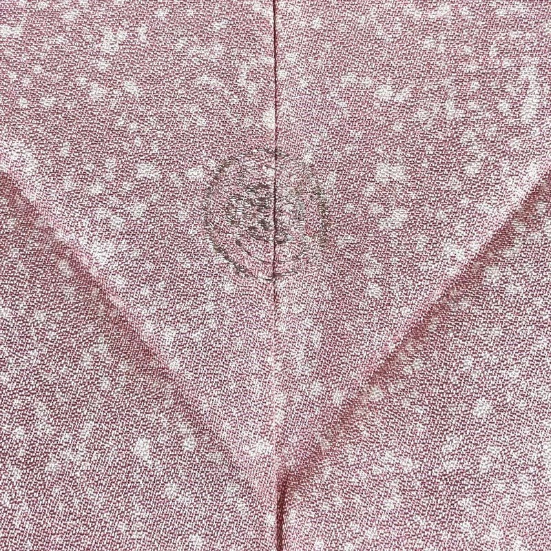 落ち着きのある写実的な絵画調の柄が特徴です。背景には「たたき染め」調の表現で白い雪が舞っているかのようにも見えます。一つ紋がはいっていますので無紋の訪問着より格が上がり準礼装となります。リユース品ですが、まだ十分ご愛用いただけると存じます。衿、左前袖、左右袖口に汚れがございます。保存臭がややございます。背に一つ紋がございます。