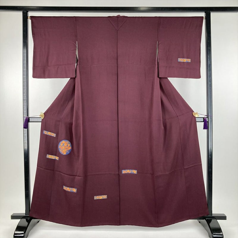 (中古) 訪問着 小豆色 赤紫系 セミフォーマル 染め 金彩 菊尽くし 袷 S 【身丈】158cm【裄丈】66cm