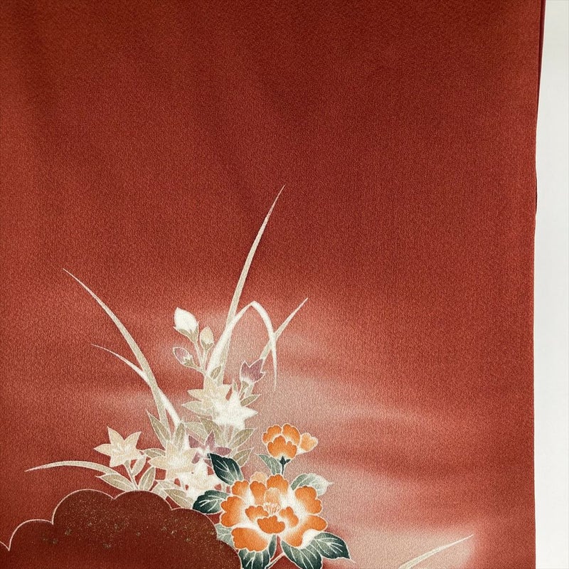 【色柄】赤茶色 茶系 赤系 セミフォーマル ぼかし染め 金彩 花車 雲