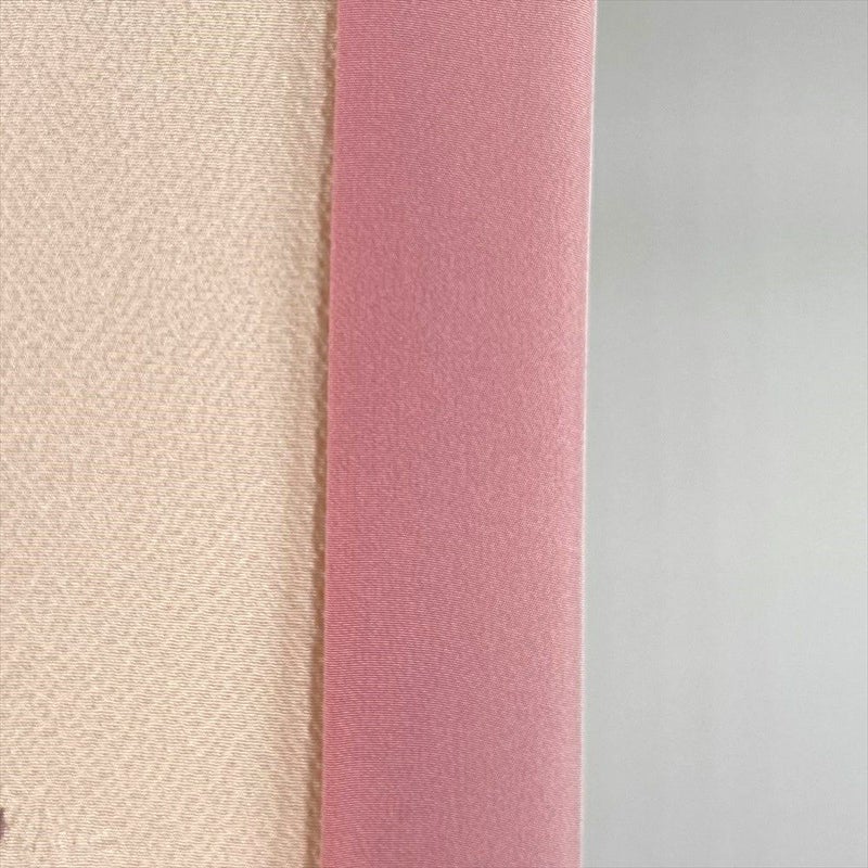 華やかさと繊細さ、生地を絞ることで生まれる立体感は「辻が花」独特の魅力です。ふっくらとした、ちりめん生地の凹凸の乱反射によって、染め上がりのピンクの色合いがより優しく豊かです。リユース品ですが、まだ十分ご愛用いただけると存じます。上前、左右後身、右後袖に茶色い汚れがございます。保存臭がややございます。