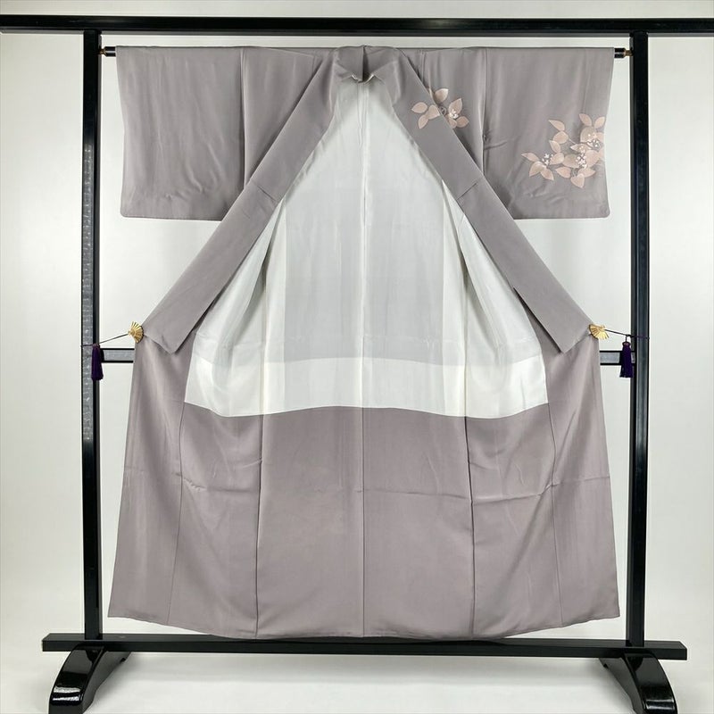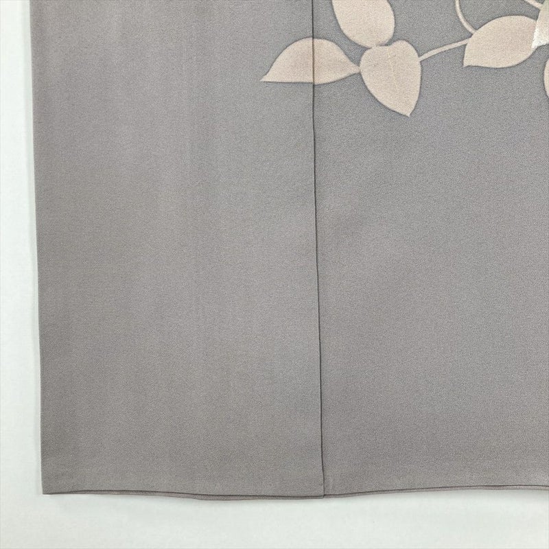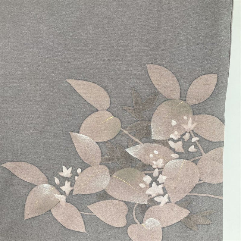 しっとりとした薄灰色の絹地に、繊細な草花が咲き誇る。今回ご紹介するのは、銀彩と刺繍が施された、上品な訪問着です。