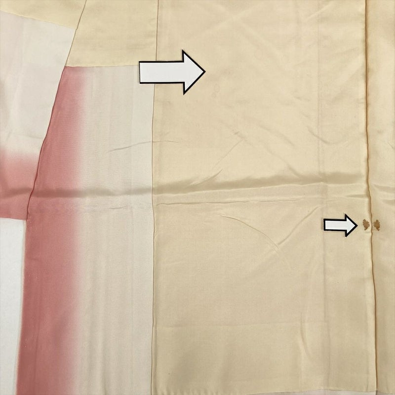 お洒落な街着として、ちょっとしたお出かけや、お稽古着としてお使いいただけるお着物です。衿裏、胴裏にシミ汚れがございます。たたみシワがございます。保存臭がややございます。しつけあり