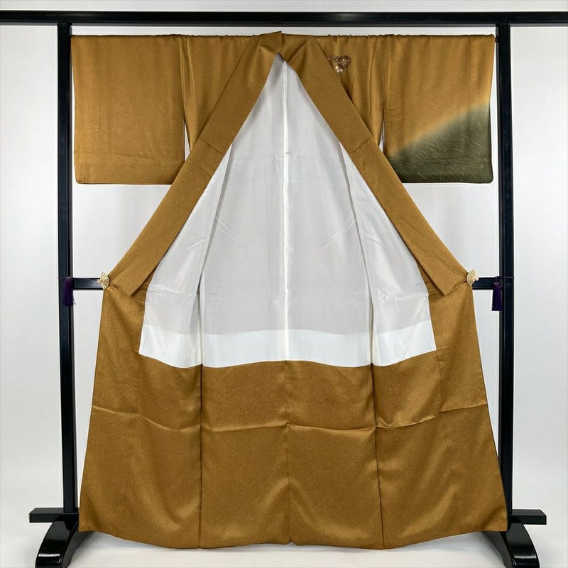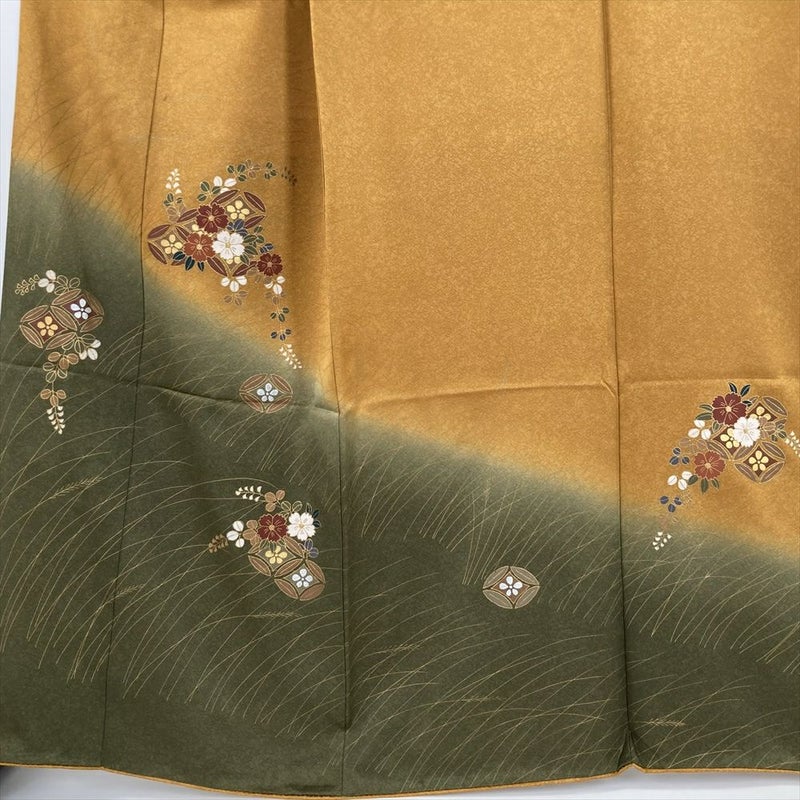 (中古) 訪問着 金茶色 セミフォーマル 染め 金彩 なでしこ 萩 袷 M 【身丈】161cm【裄丈】70cm