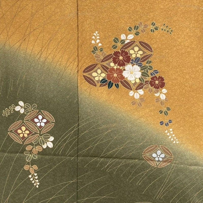 【色柄】金茶色 セミフォーマル 染め 金彩 なでしこ 萩