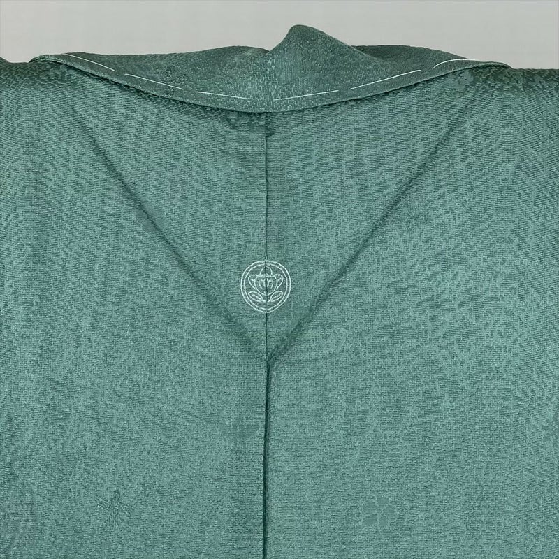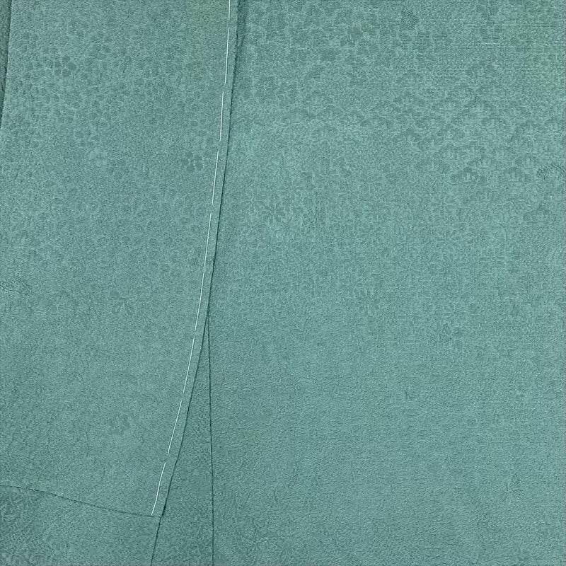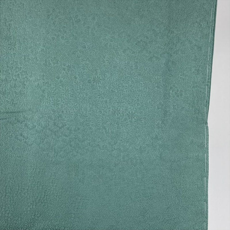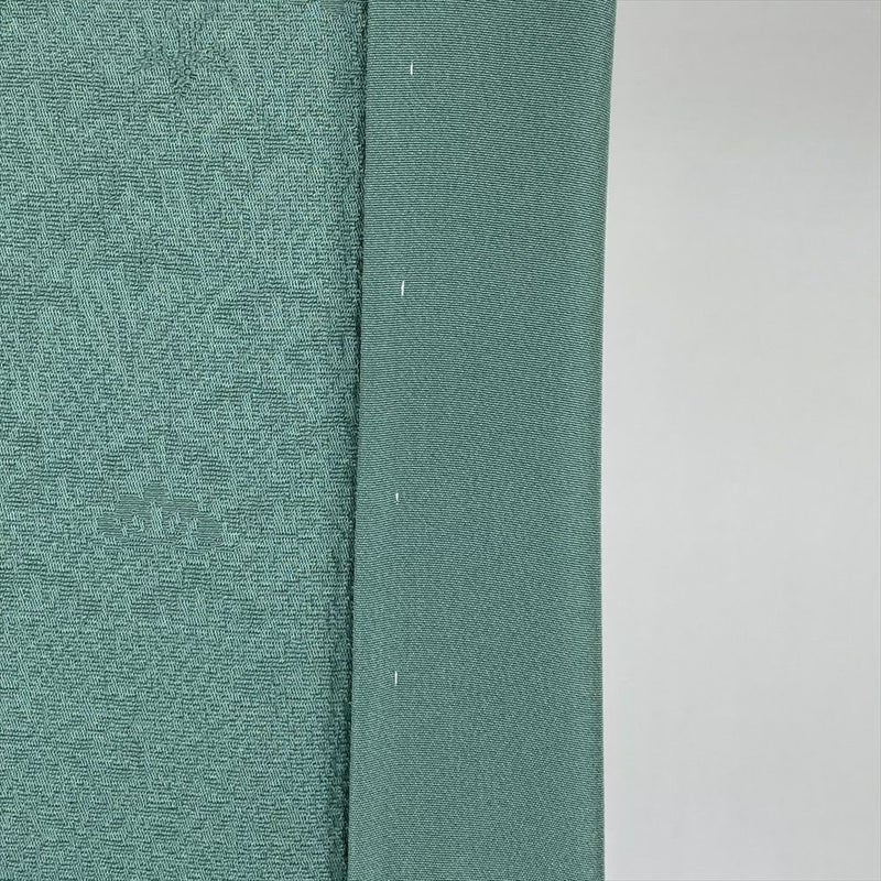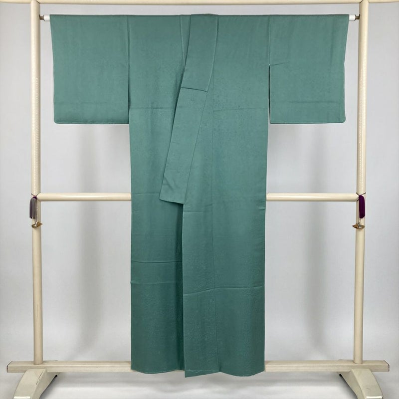 (中古) 色無地 灰緑色 セミフォーマル 染め 地紋織り 袷 絹【身丈】147cm【裄丈】65cm