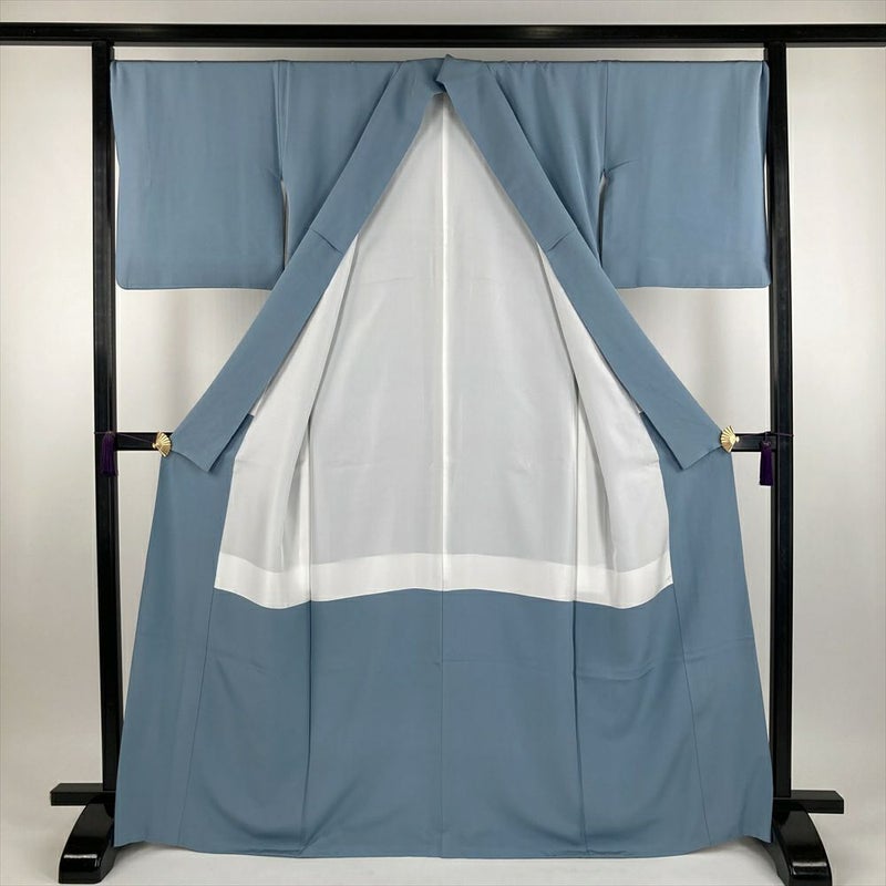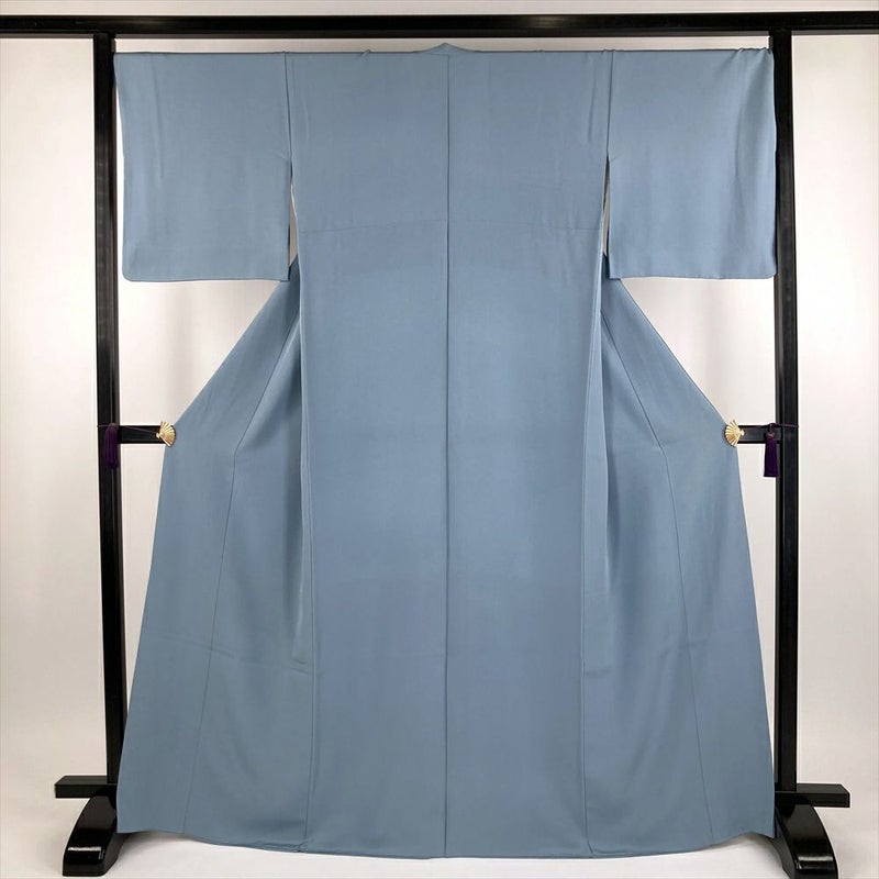 (中古) 色無地 水色 カジュアル ちりめん 袷【身丈】163.5cm【裄丈】70cm