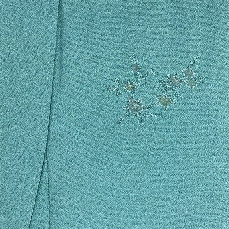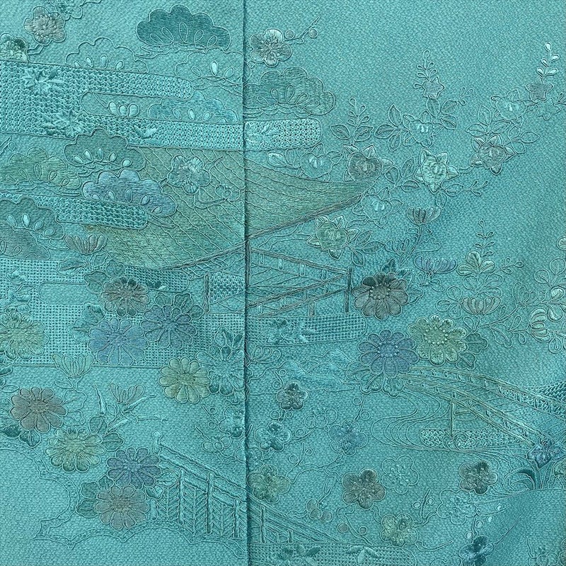 【色柄】青緑色 セミフォーマル ちりめん 刺繍 古都の景色
