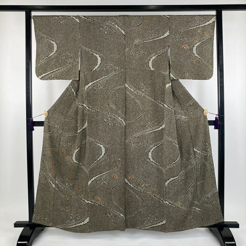 (中古) 付下 こげ茶 朽葉色 セミフォーマル 染め 絞り 金彩 刺繍 唐花 袷【身丈】156cm【裄丈】67.5cm