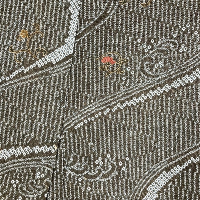 【色柄】こげ茶 朽葉色 セミフォーマル 染め 絞り 金彩 刺繍 唐花