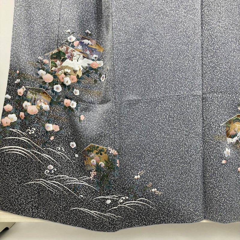 【色柄】ブルーグレー セミフォーマル 地紋織り たたき染め 金銀彩 花鳥