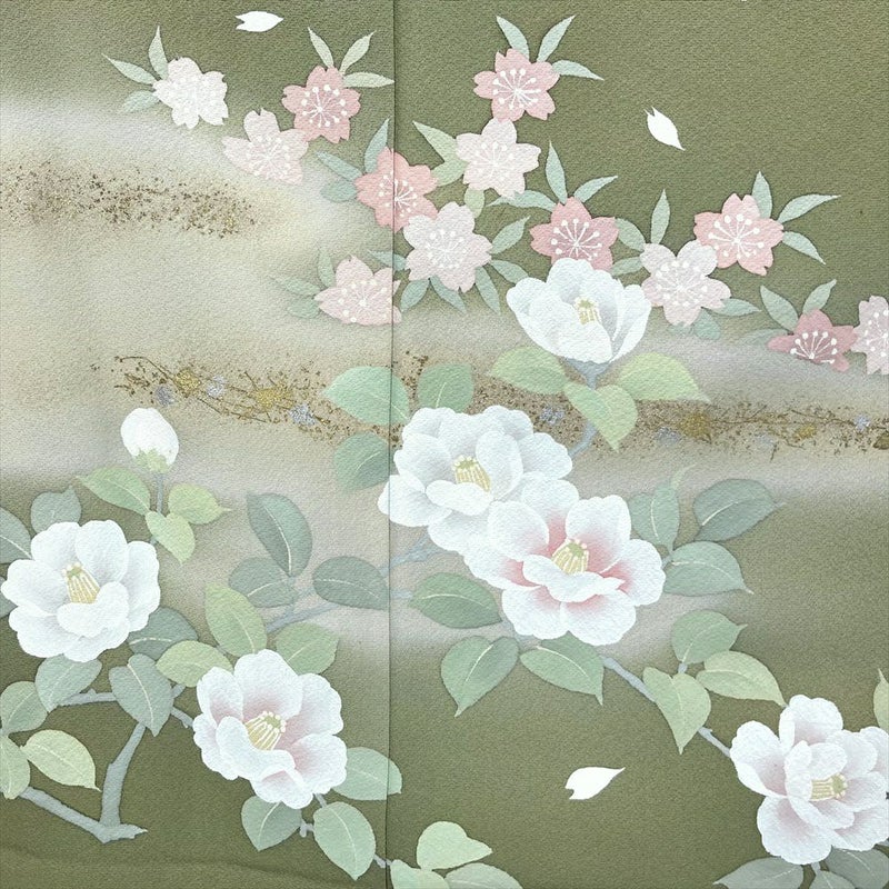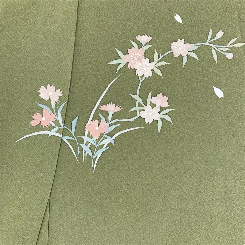 【色柄】草色 緑 セミフォーマル 椿 桜 撫子