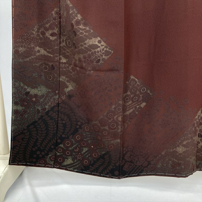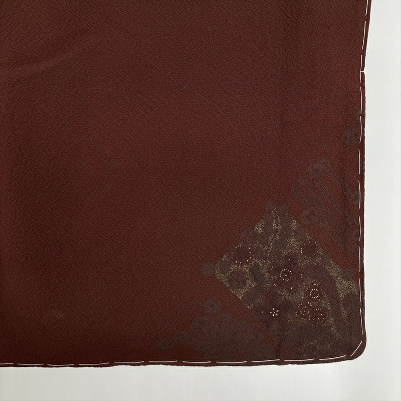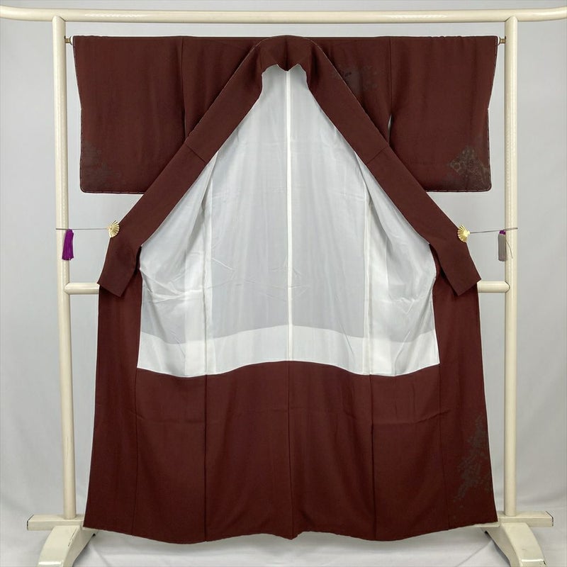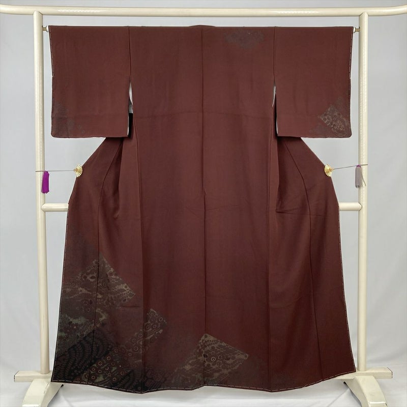 (中古) 訪問着 焦げ茶 葡萄茶 赤紫 セミフォーマル 辻が花文様 袷 絹 【身丈】155cm【裄丈】66cm