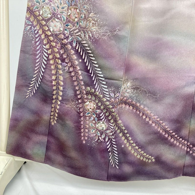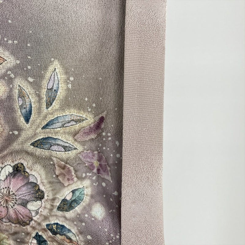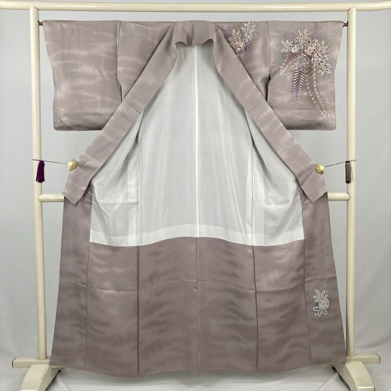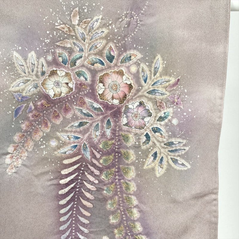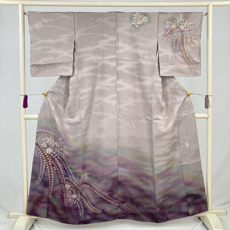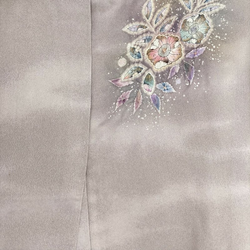 (中古) 訪問着 灰紫 セミフォーマル 辻が花文様 袷 絹 【身丈】155cm【裄丈】66cm
