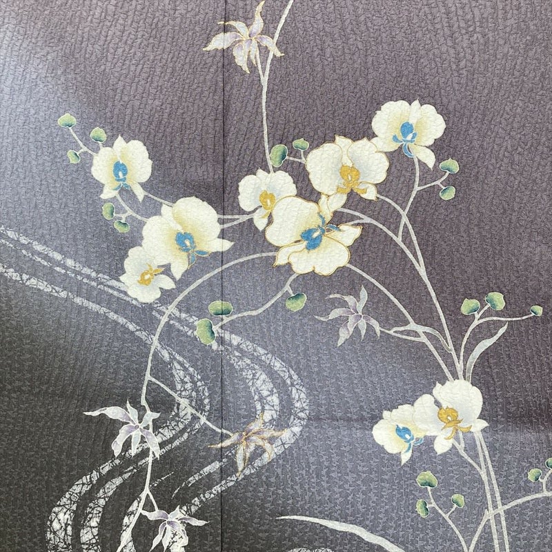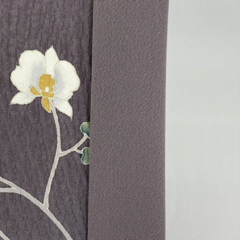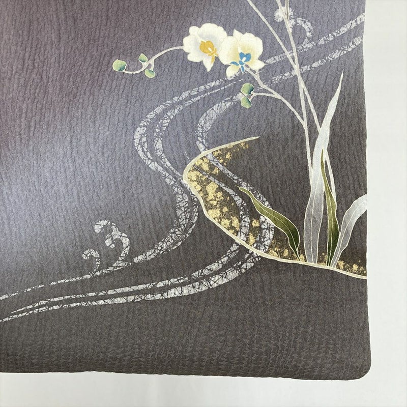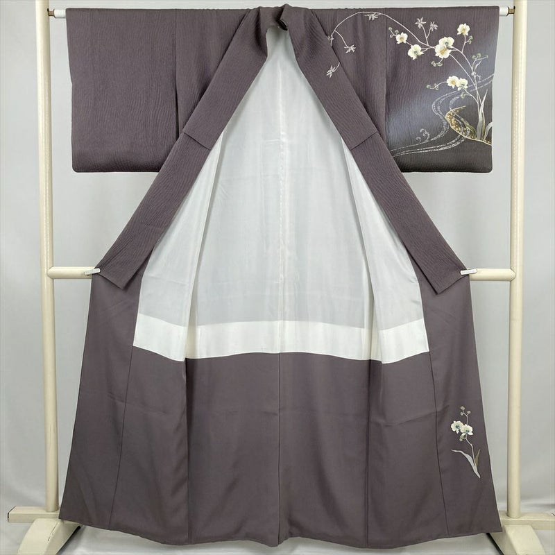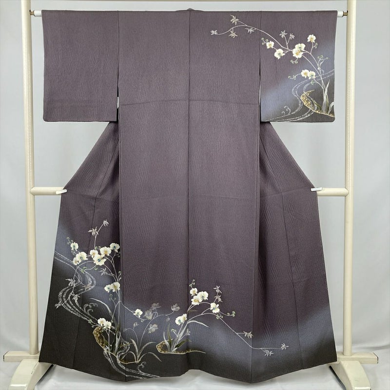 (中古) 訪問着 灰紫 セミフォーマル 地紋織り ぼかし染め 刺繍 蘭 袷 絹 【身丈】155cm【裄丈】64cm