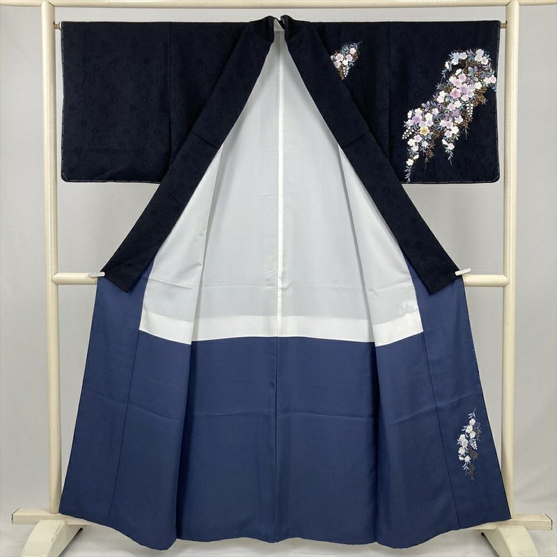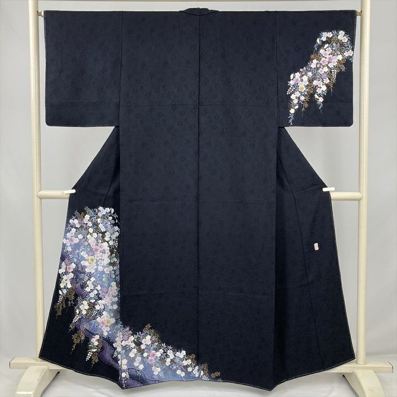 (中古) 訪問着 濃紺 セミフォーマル 絞り 辻が花 袷 絹【身丈】152.5cm【裄丈】66cm