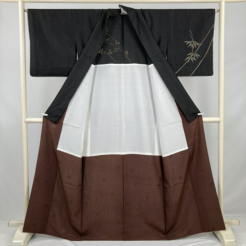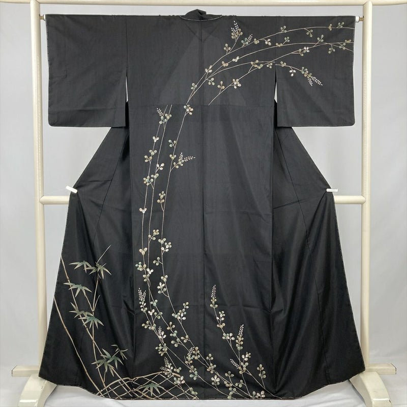 (中古) 訪問着 黒 カジュアル セミフォーマル 笹 袷 絹【身丈】159cm【裄丈】65.5cm