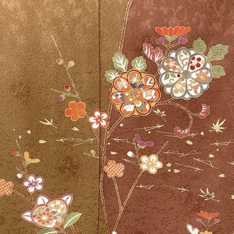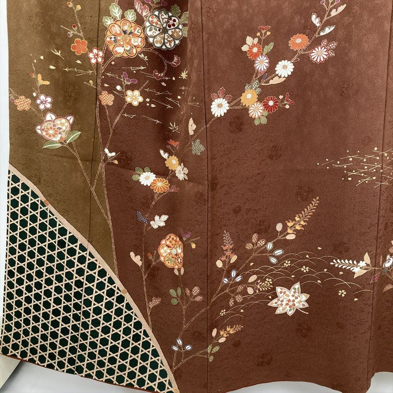 【色柄】赤茶 セミフォーマル 垣根 春秋花文
