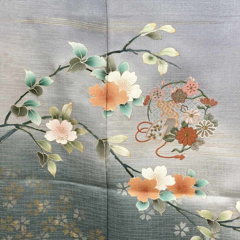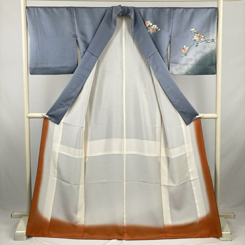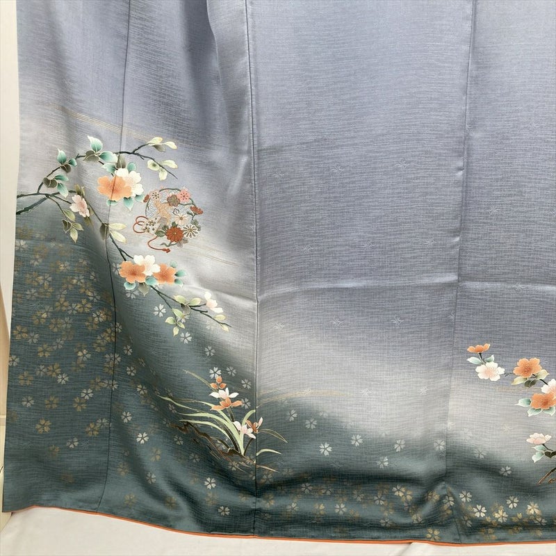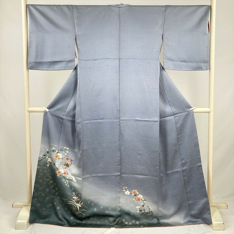 (中古) 付下 薄灰青 くすみブルー セミフォーマル 四季花 袷 絹【身丈】165cm【裄丈】70cm