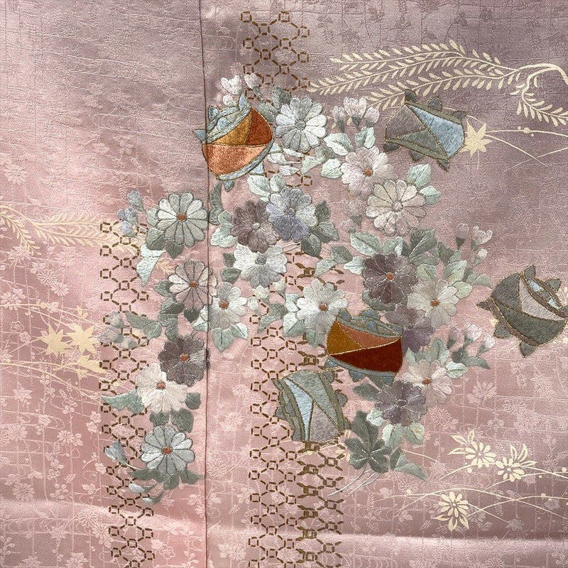 【色柄】灰梅 ピンクグレー セミフォーマル 糸巻き 菊