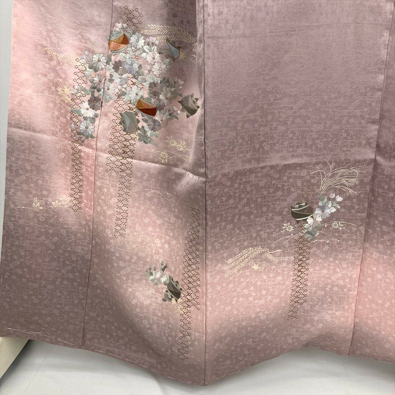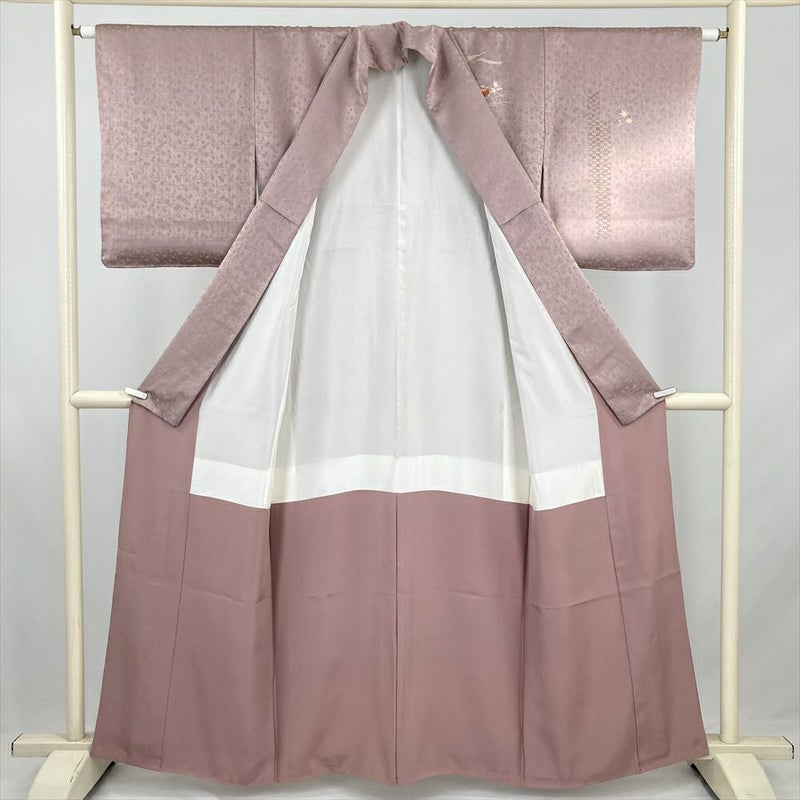 (中古) 訪問着 灰梅 ピンクグレー セミフォーマル 糸巻き 菊 袷 絹【身丈】155cm【裄丈】63.5cm