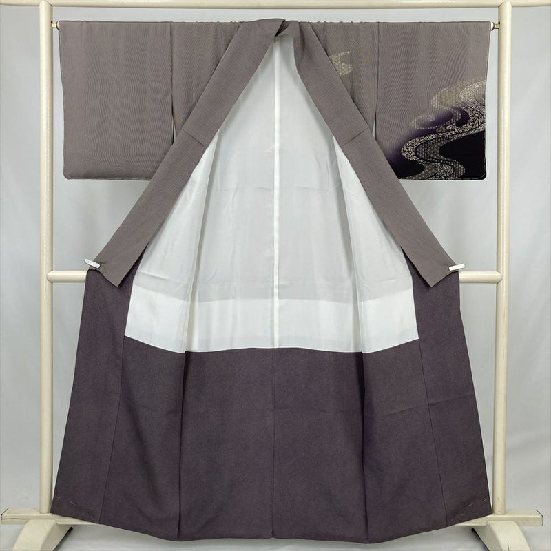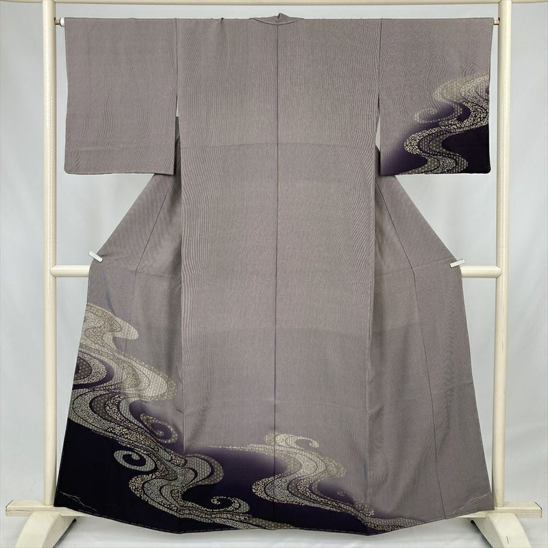 (中古) 訪問着 紫 セミフォーマル 万筋 流水 霞文 袷 絹【身丈】154cm【裄丈】66cm