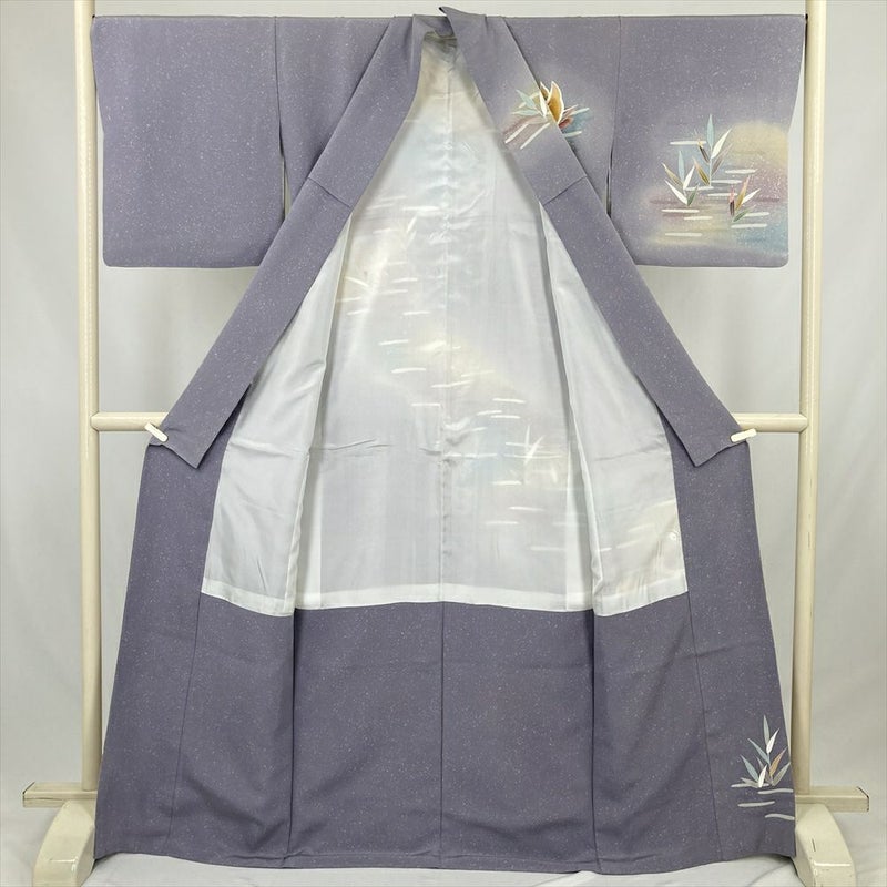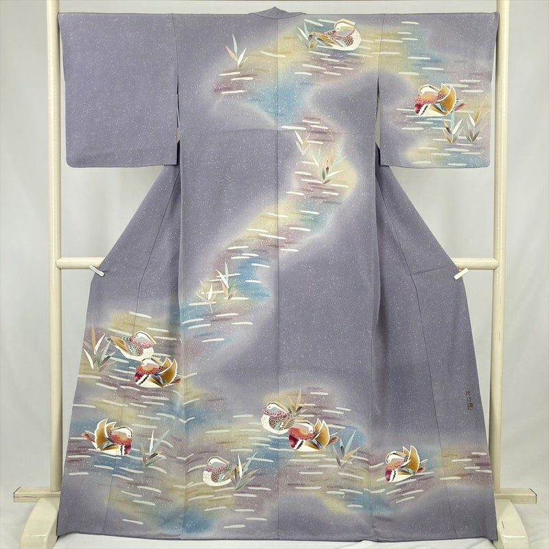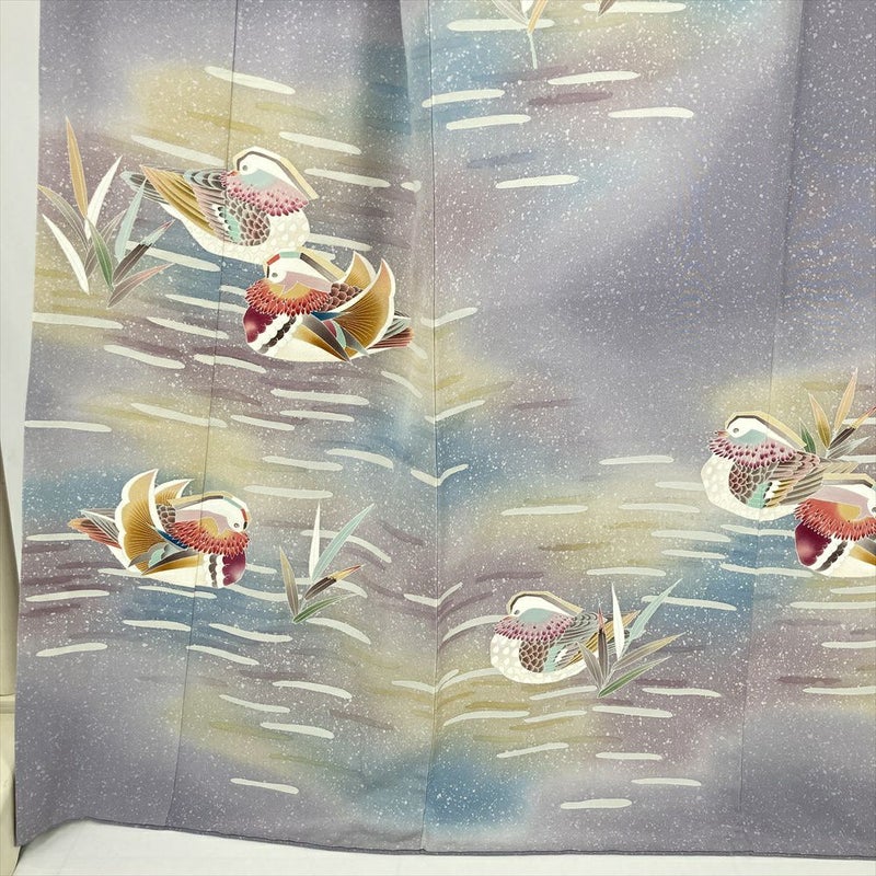 (中古) 訪問着 灰紫 セミフォーマル 鴛鴦 袷 絹【身丈】162cm【裄丈】68.5cm