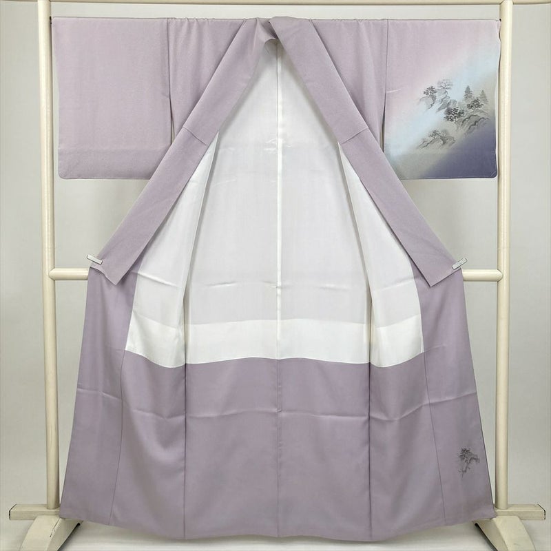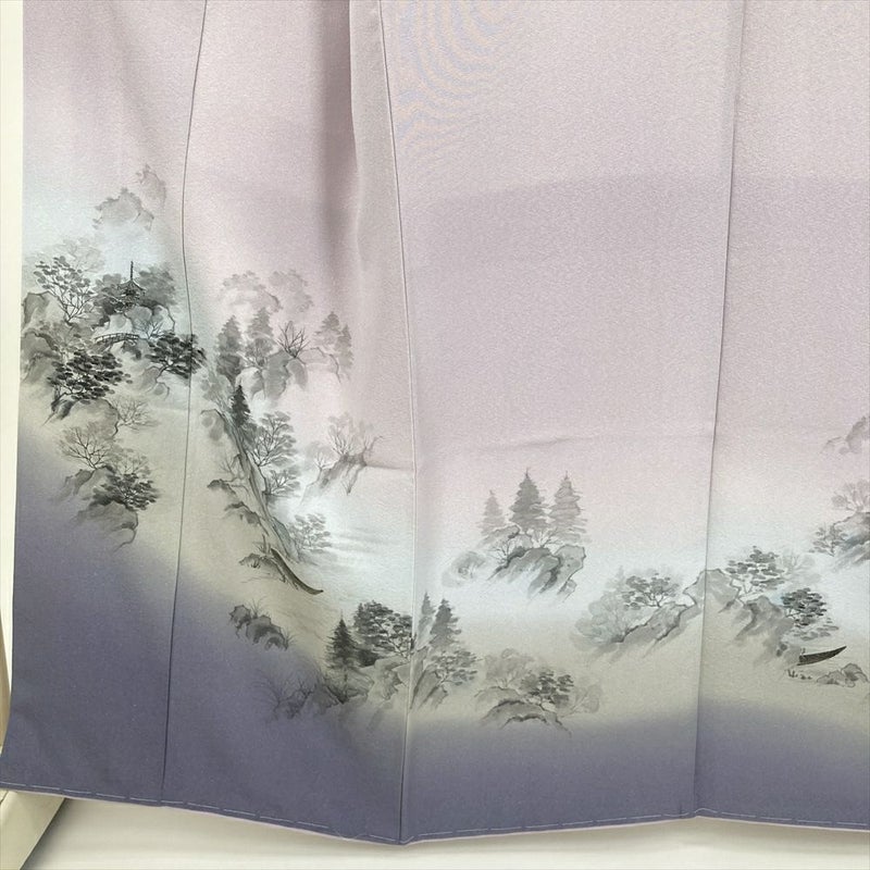 (中古) 訪問着 薄藤 薄紫 セミフォーマル 風景文 袷 絹 【身丈】155cm【裄丈】69.5cm