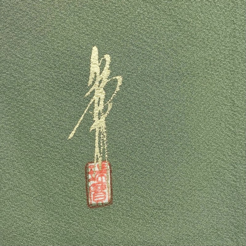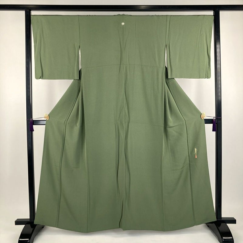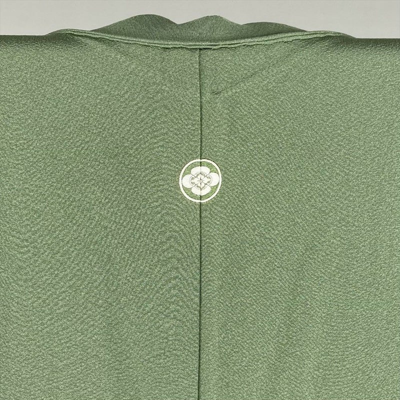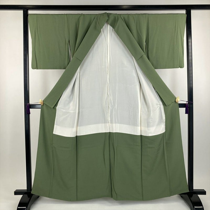 リユース着物 色無地 緑色 セミフォーマル ちりめん 袷 未洗い 【身丈】158cm【裄丈】68.5cm MS3014