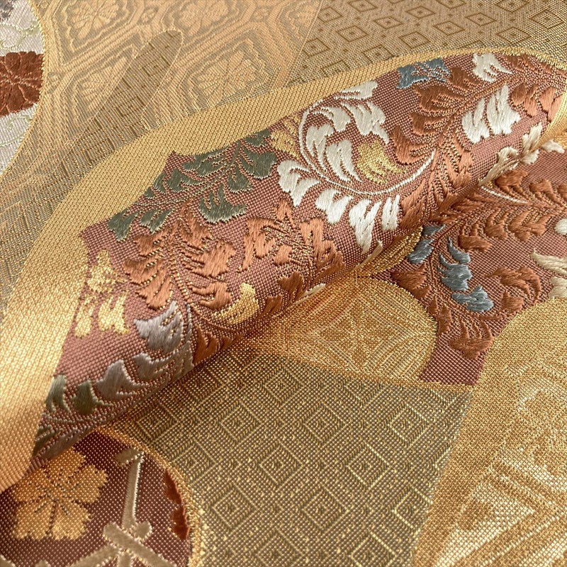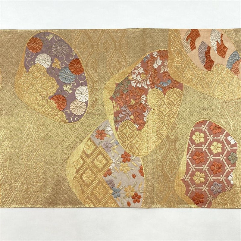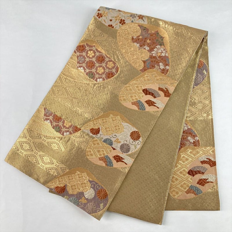 (中古)袋帯 金 セミフォーマル フォーマル 六通 唐織 貝合わせ 絹
