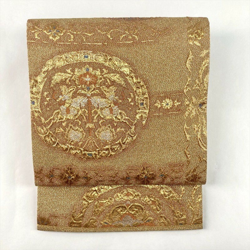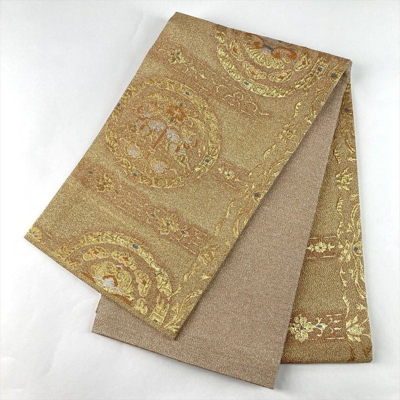 (中古)袋帯 金 セミフォーマル フォーマル 六通 織り 狩人文 絹