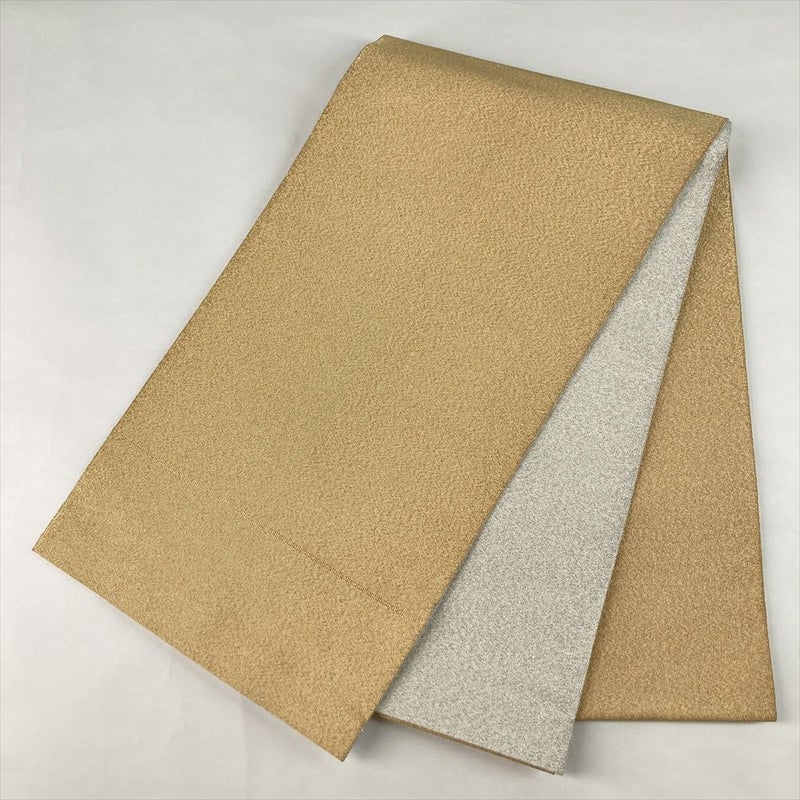 (中古)袋帯 金 銀 セミフォーマル フォーマル 六通 両面 リバーシブル 綴れ織 無地 絹