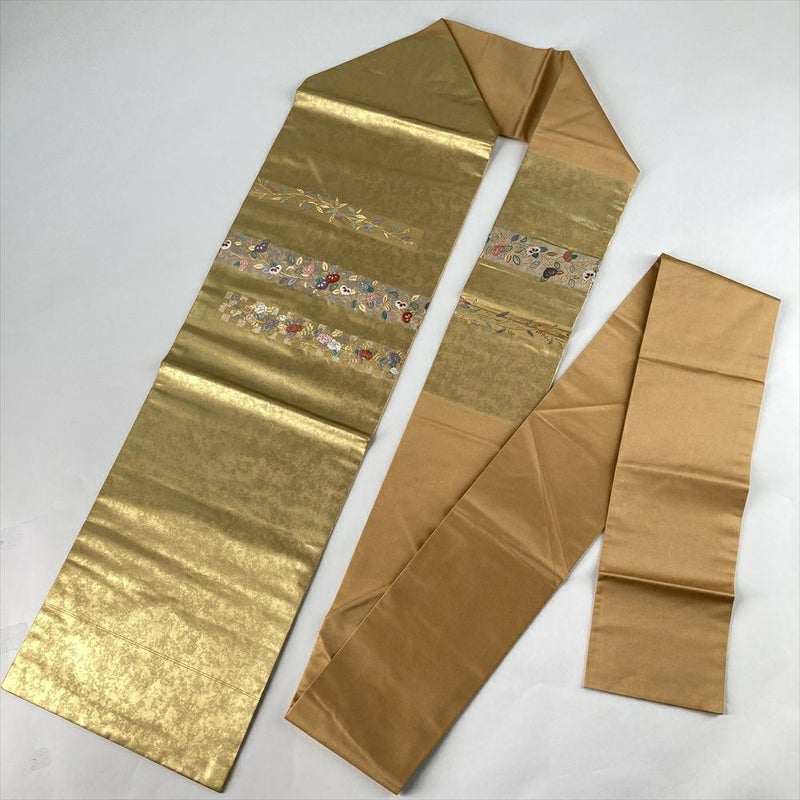 【色柄】金 カジュアル セミフォーマル 横段 橘 牡丹 引き箔