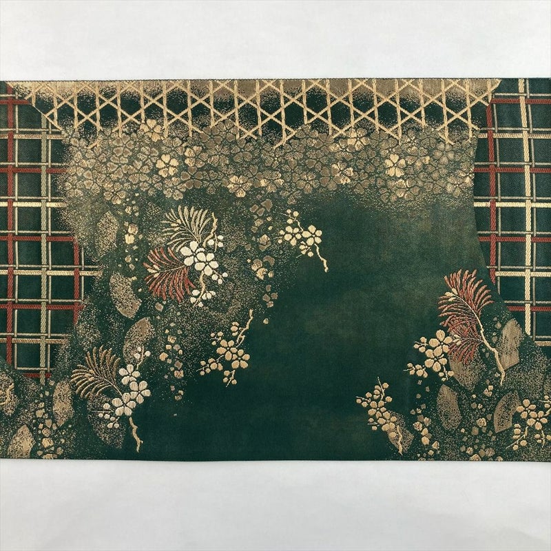 (中古)袋帯 緑 セミフォーマル フォーマル 六通 金糸 織り 松 梅 桜 籠目 格子 絹