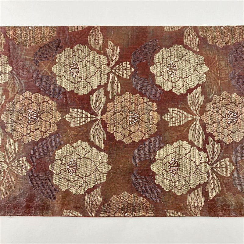(中古)袋帯 赤 セミフォーマル 六通 金糸 牡丹小袖文 絹