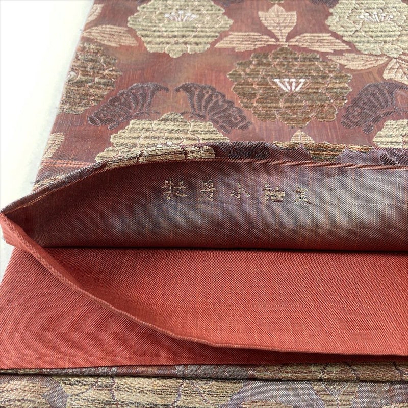 格調高い牡丹小袖文を贅沢に織り出し、古典の情緒を現代的な気品へと昇華させました。