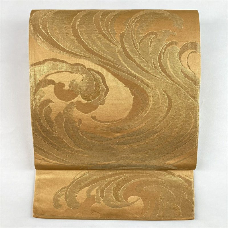 (中古)袋帯 金 セミフォーマル フォーマル 六通 織り 流水文 絹