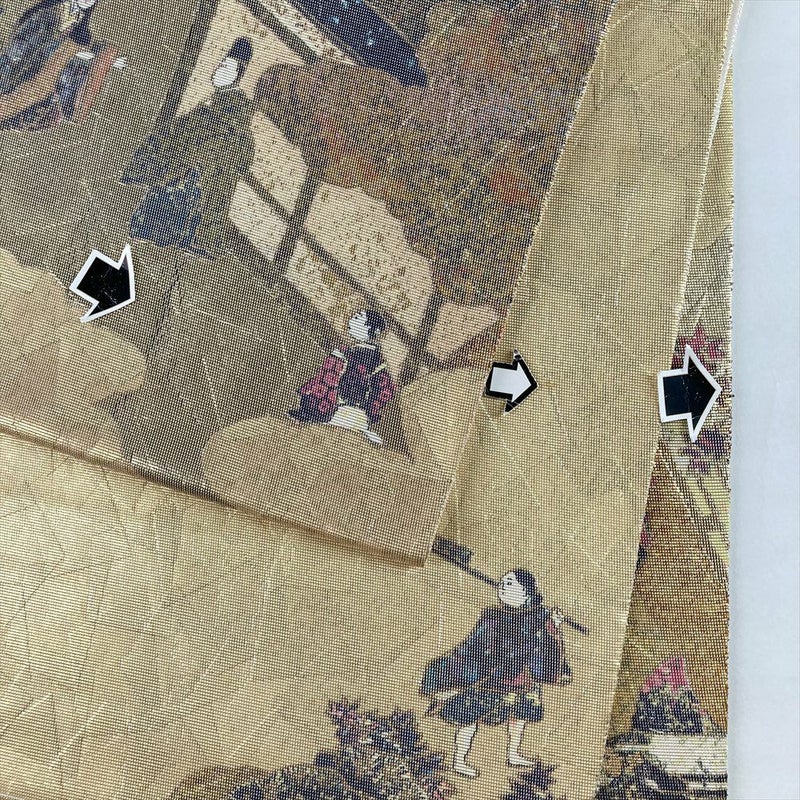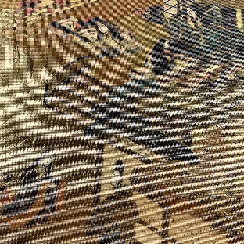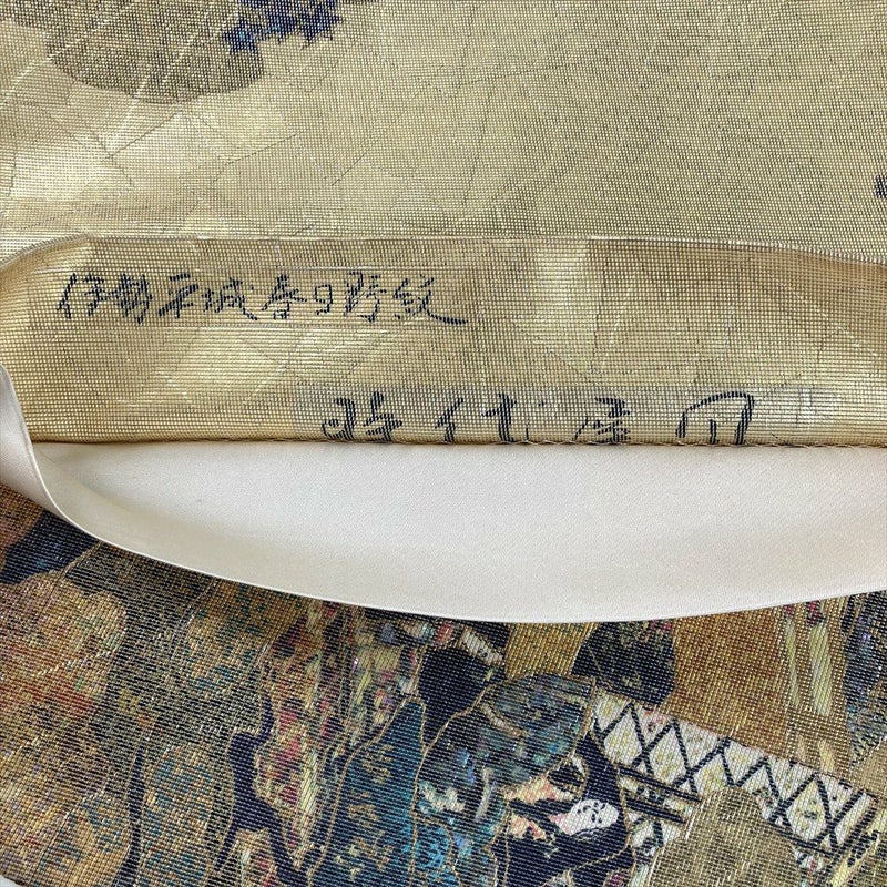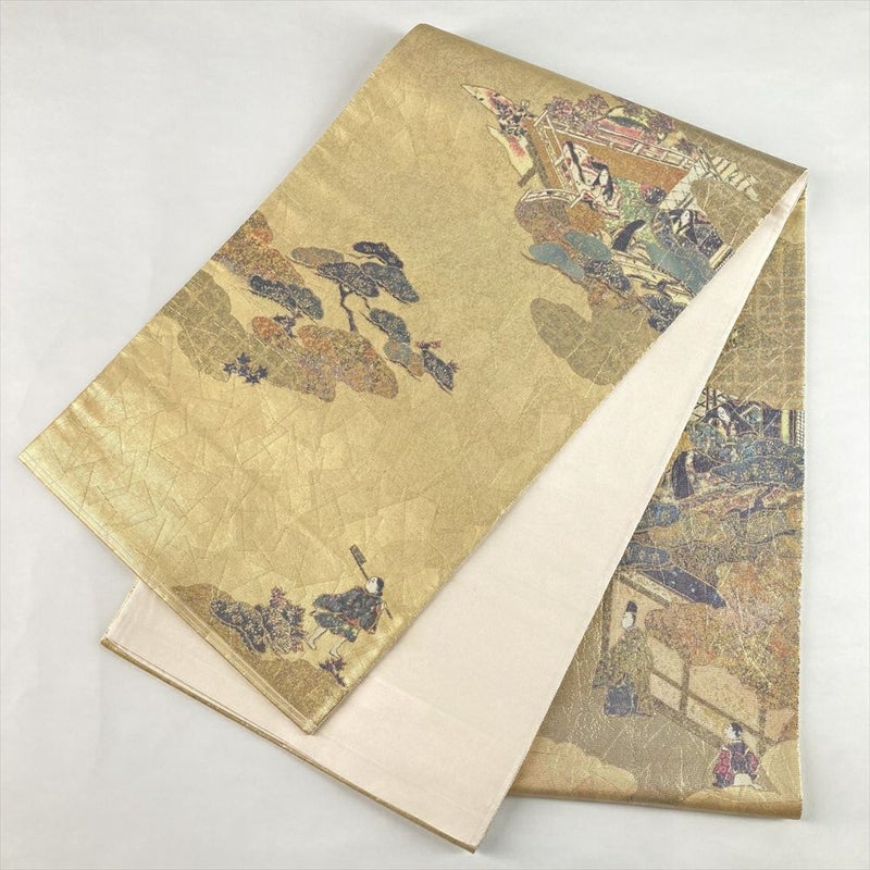 (中古)袋帯 金 セミフォーマル フォーマル 六通 織り 螺鈿 平安絵巻 絹